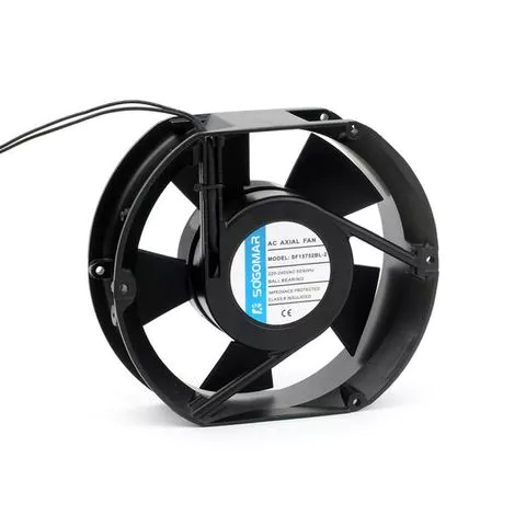 Fã de AC Modelo: SF15752 Dimensões: 150 x 172 x 52mm Rolamentos: óleo/bola Potência: 110-120VAC, 220-240VAC, 380VAC Corrente: 0.17/0.18A Frequência: 50/60 (Hz) Mérito: 28/30 (W) Velocidade: 2550/2800 (R/min) Volume de vento: 6.7/7.6 (M3/min) Ruído: 55/57 (dB-A) Peso: 900 (g) Embalagem: sem caixa separada, embalagem de caixa de papelão comum 24 unidades / 1 caixa inteira; Quadro: liga de alumínio de tinta preta anticorrosão, estrutura anti-úmida; Folha de vento: moldagem por injeção uma vez moldada, fio de vidro PBT 30% e retardantes de chama de grau VO; Eixo: baixo ruído importação de rolamento de esfera dupla; Melhor: linha de embalagem de tinta usando isolamento de grau B, resistência à temperatura 120 graus Celsius; Resistência ao isolamento: mais de 500 meu-eur; Resistência à tensão: corrente de vazamento 0,5mA. Tensão de resistência 1500V/1 min; Use temperatura ambiente (C): -10C a 65C